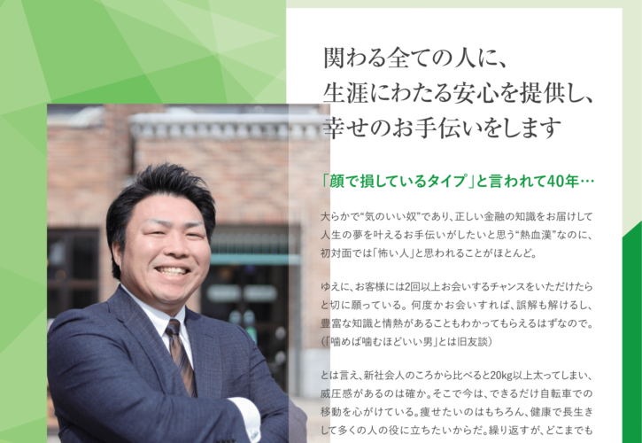三重県四日市市を拠点に資産形成のサポートを行っているMirai Relief代表 辻中秀明様より、オンラインA4名刺の作成をご依頼いただきました。